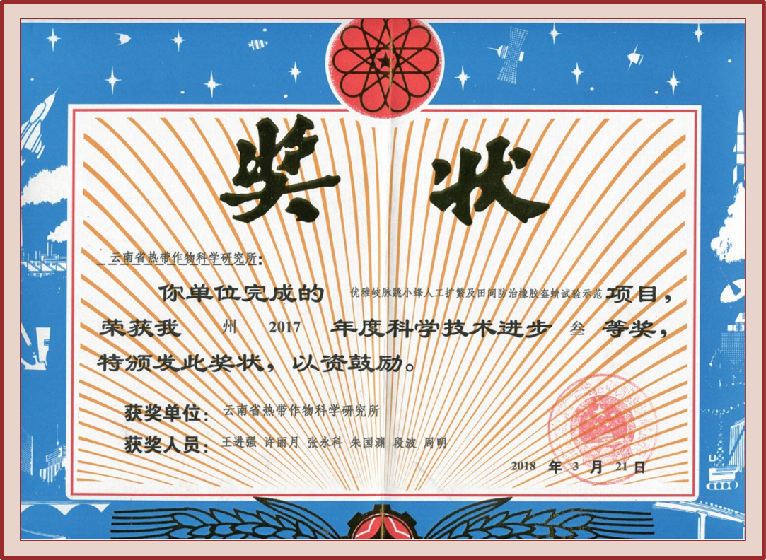 授奖级别 西双版纳州科学技术进步奖三等奖