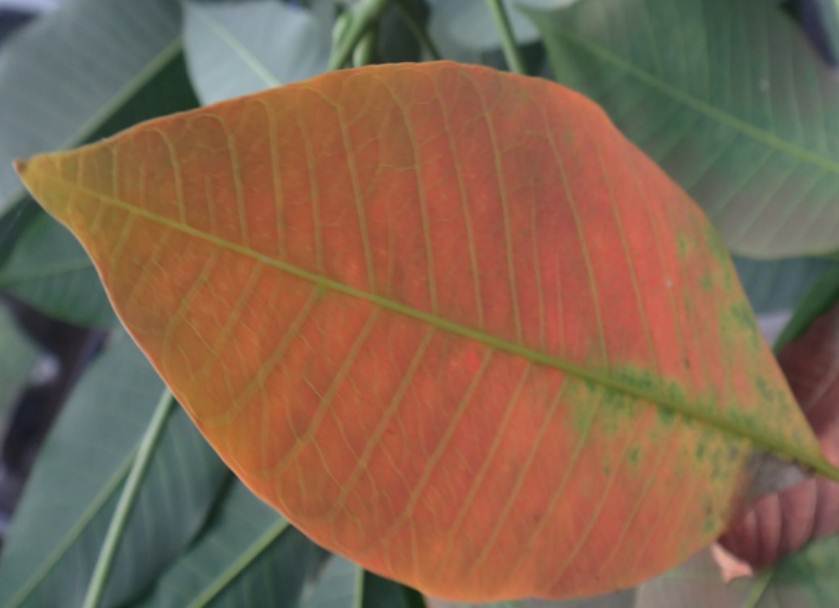 危害症状:初期在叶背基部主脉与侧脉交叉处吸食,后沿主脉两侧蔓延到全叶;早期被害叶片,呈灰褐色斑块,后期为害状呈黄色斑块。由于被害部分停止生长,往往变为畸形(如不对称、卷曲等),严重时叶片枯黄,叶柄产生离层脱落。