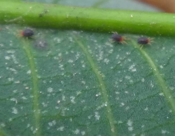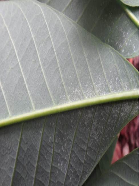 危害症状:主要在橡胶树叶片背面取食危害。危害时沿叶片侧脉向周围扩散,早期被害叶片,呈白色斑点,后期为害状呈褐色斑块。被害部分停止生长,往往变为畸形(如不对称、卷曲等)。