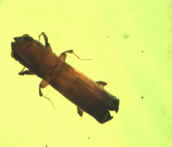 属鞘翅目Coleoptera。主要有橡胶材小蠹Xyleborus leborusaffinis Eichh、铲尾长小蠹Platypus calamus Blandford、小杯长小蠹Dinoplatypus cupulatulus Schedl等。
