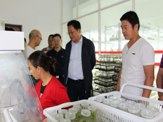在花卉园科普教育基地,李国臣书记一行深入引水入城东水系花卉园段的水坝源头,察看工程建设情况,了解整个水系的规划建设;走进科技陈列馆,对建设投资、规划设计、完工时间等进行了解,要求加快施工建设进度。李民副局长提出要在今年6月底前完成;随后察看了花卉园内留存的几株第一代芽接橡胶树。在云垦澳洲坚果科技开发有限公司,察看了澳洲坚果生产流程、生产设备,并了解车间管理及生产销售等情况。在暗褐网柄牛肝菌试验菇房,察看了牛肝菌的栽培试验情况,听取科技人员汇报牛肝菌的科研工作。在热带农业研究中心综合实验楼,察看了实验室配套设施,与科研人员面对面交流,了解科研人员的工作和生活情况。在红掌大棚,科技人员汇报了红掌的新品种培育、生产销售和亩产值等内容。在中古辣木科技合作中心试验示范基地,参观了辣木无土栽培试验大棚和辣木种质资源圃。