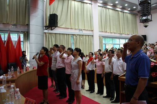 会议由副所长倪书邦主持。庄严的《国歌》拉开大会的帷幕后,方春玉、白汝红、刘忠妹、周程、周会平五名新党员来到主席台前,举起了他们的右手站在了鲜红的党旗下庄严的宣誓,党办主任胡雪琼领誓,其他老党员也全体站了起来,举起了他们的右手,跟随领誓者重温入党誓词。