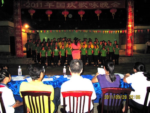 为活跃职工的文化生活,喜迎国庆62周年, 2011年9月28日 星期三晚八点,热作所工会举行“2011年国庆歌咏晚会”。所党委书记、所长李国华、党委副书记、工会主席李存生、副所长杨庄、倪书邦、李治松等所领导出席了本次晚会。