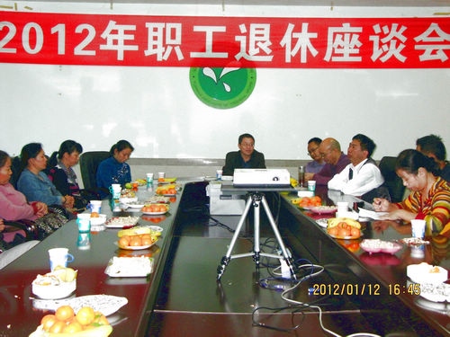 2012年元月12日下午,我所在科研信息楼举办2011年度职工退休座谈会,欢送2011年度光荣退休的李娅等14名职工。所党委副书记、工会主席李存生、副所长倪书邦、杨庄、李治松及相关部门的负责同志参加了座谈会。