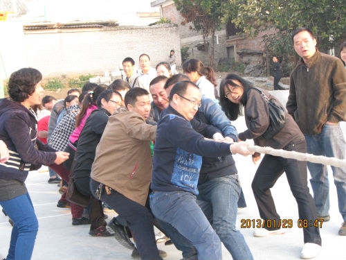 1月29日,省热作所工会在球场举行2013年迎春拔河比赛,来自热作所的7个分会的20组男女混合职工队伍,共372人参加了本次比赛。