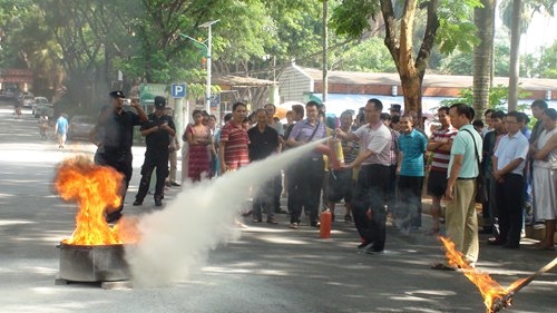 为落实6月安全生产月活动,针对热作所多数职工对火灾的认识不清楚,和不会正确使用灭火器等方面的不足。特邀请景洪市消防大队为热作所举办一场消防安全知识现场讲座活动。消防大队官兵深入浅出的为大家讲解什么是火灾、火灾是怎样发生的、火灾的种类以及火灾发生后怎样逃生自救的基本常识。现场教大家正确使用灭火器,分阶段分步骤的进行操作示范。并且让大家亲自操作亲身体会用灭火器灭火的过程。眼看着一口冒着滚滚浓烟大火的油锅,一次次被扑灭,大家基本掌握灭火器正确使用方法。