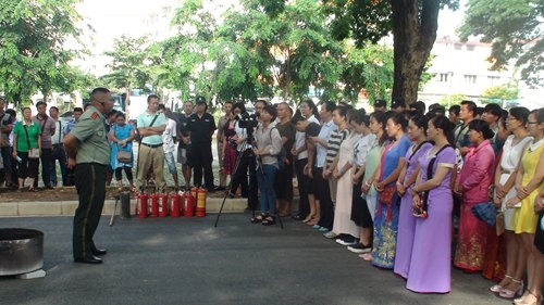 2015年6月18日 早上9点在西双版纳热带花卉园停车场内聚集好多人。他们是来自云南省热带作物科学研究所机关、科研、实体的在职职工及花卉园社区居民。将在这里由景洪市消防大队官兵为大家举行消防安全演练活动。