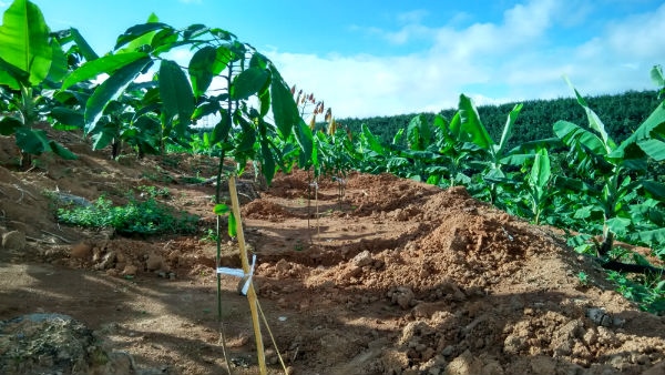 10月8日 ,江南试验队洪支荣队长在带领技术员、辅导员对原六队住宿区道路两旁行道树进行修枝工作时,发现新定植的环境友好型生态胶园中,靠近山脚的区域有很多胶苗出现倒伏。为了保证橡胶苗的直立生长,同时也为保证我所环境友好型生态胶园的标准化示范工作。洪支荣队长当即通知全队技术员、辅导员以及巡防人员共9人,于 10月9日 对原六队新定植胶园中的倒伏苗进行拉扶。