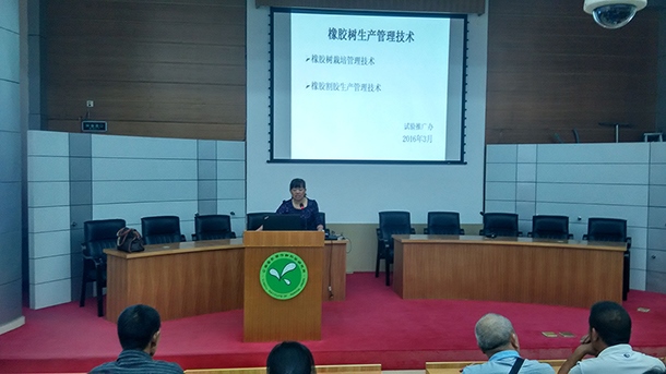 为积极做好橡胶树开割前各项准备工作,逐步提高省热作所环境友好型生态胶园的管理质量。省所试推办于2016年3月14日上午8时,在所部学术厅举行割胶工、林管工现场培训学习会议,省所江南试验队和江北试验队全体队委成员、割胶工和林管工参加了此次培训会议。其中,江南试验队应到会人数43人,实到会人数37人,请假6人。