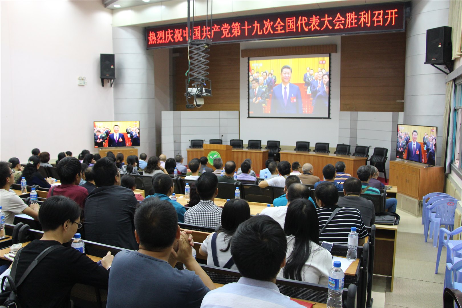 10月18日 上午9时,中国共产党第十九次全国代表大会在北京召开。省热作所组织党员在学术厅集体收看大会开幕式盛况,认真聆听习近平总书记代表第十八届中央委员会所做的工作报告。