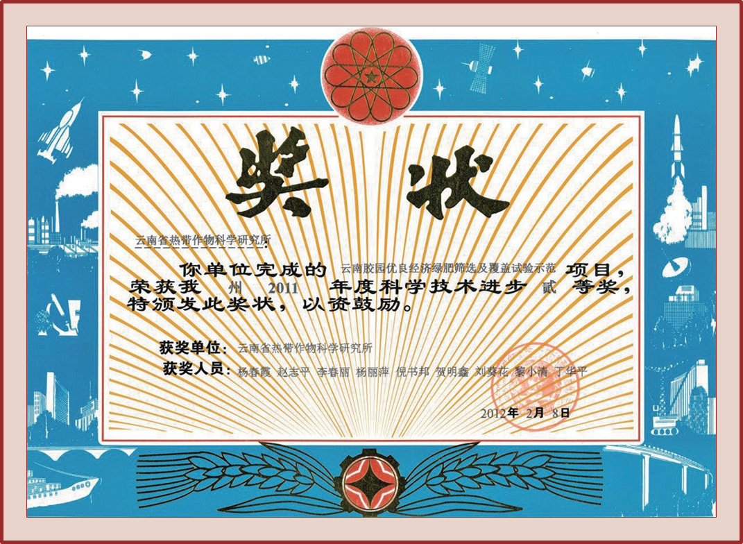 授奖级别 西双版纳州科学技术进步奖二等奖