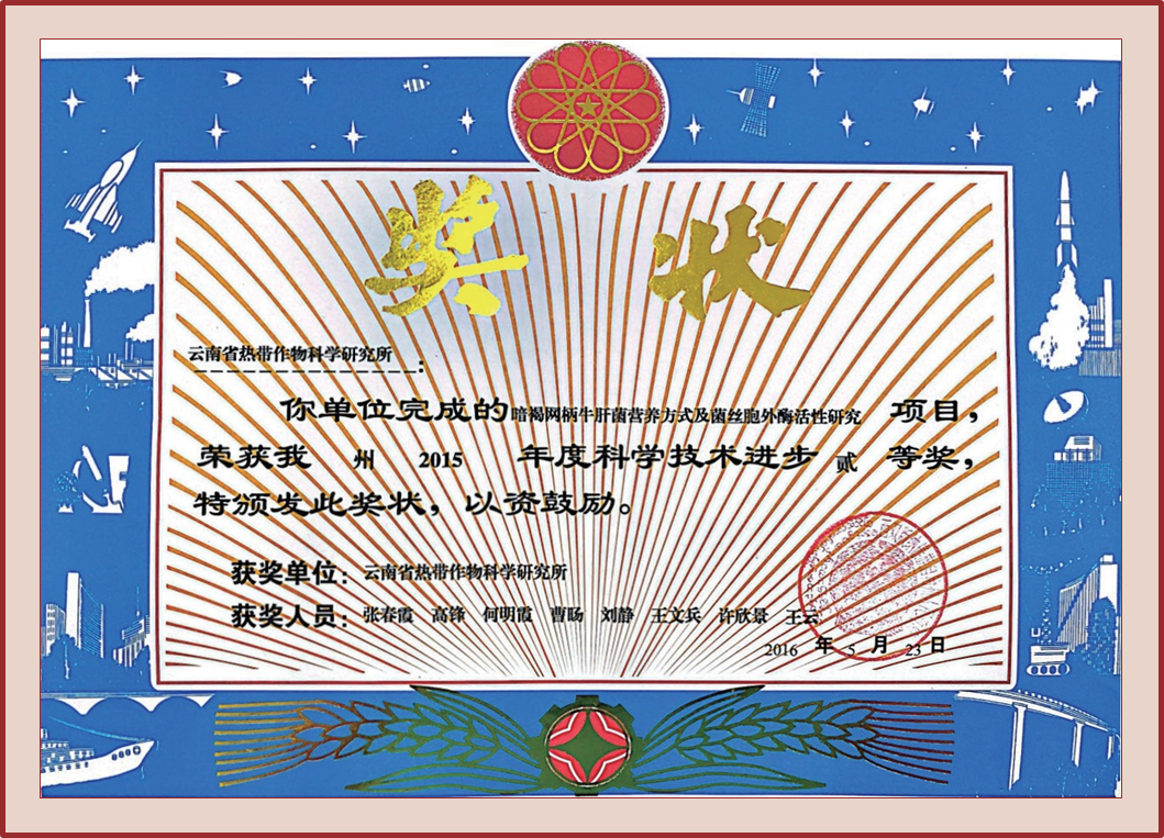 授奖级别 西双版纳州科学技术进步奖二等奖