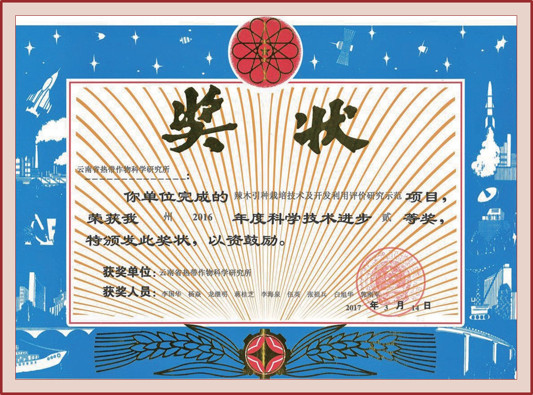 授奖级别 西双版纳州科学技术进步奖二等奖