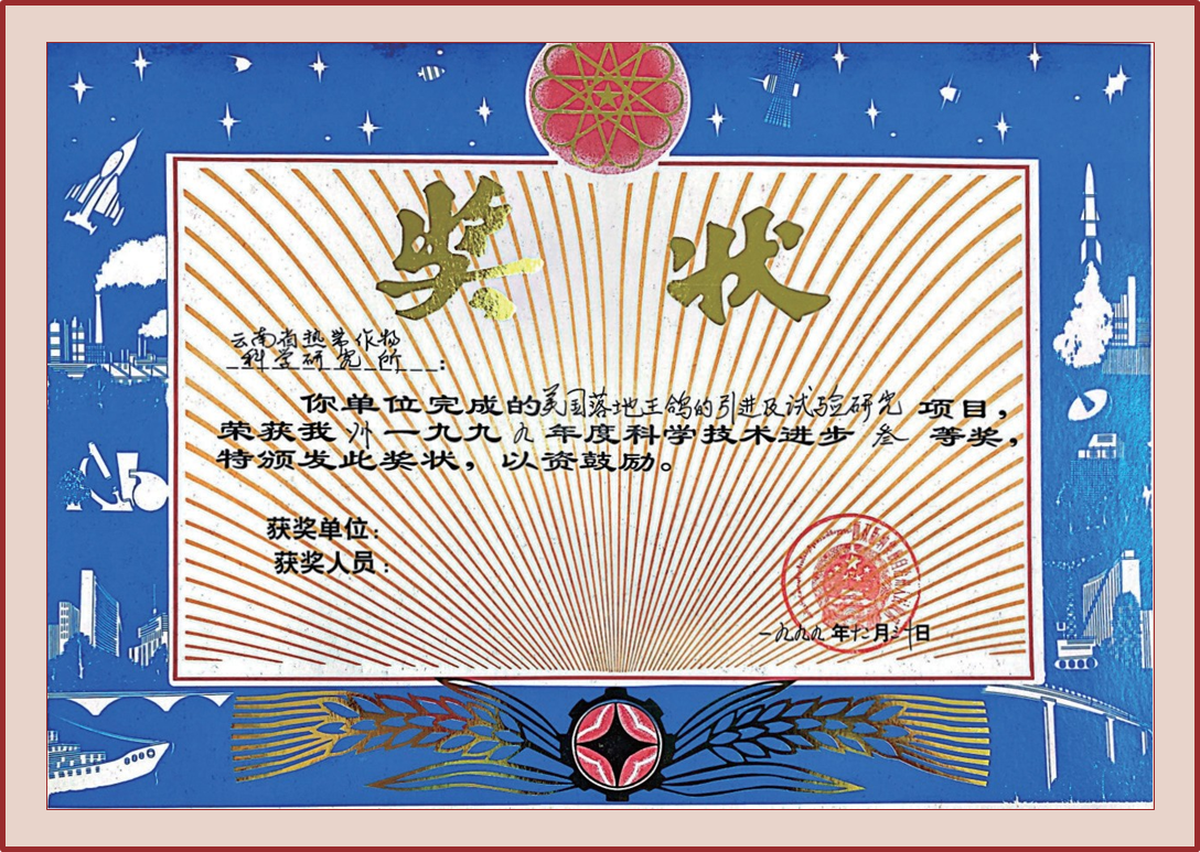 授奖级别 西双版纳州科学技术进步奖三等奖