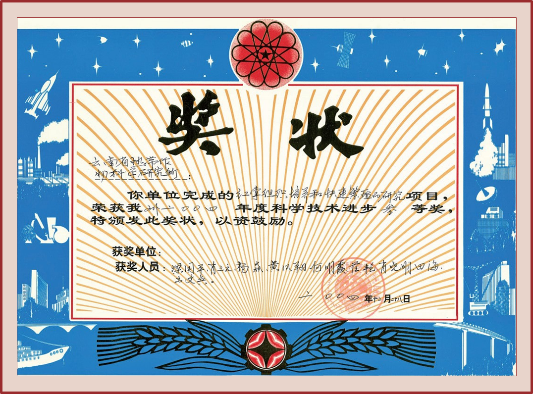 授奖级别 西双版纳州科学技术进步奖三等奖