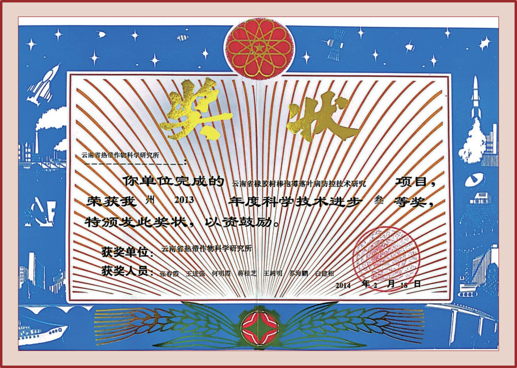 授奖级别 西双版纳州科学技术进步奖三等奖