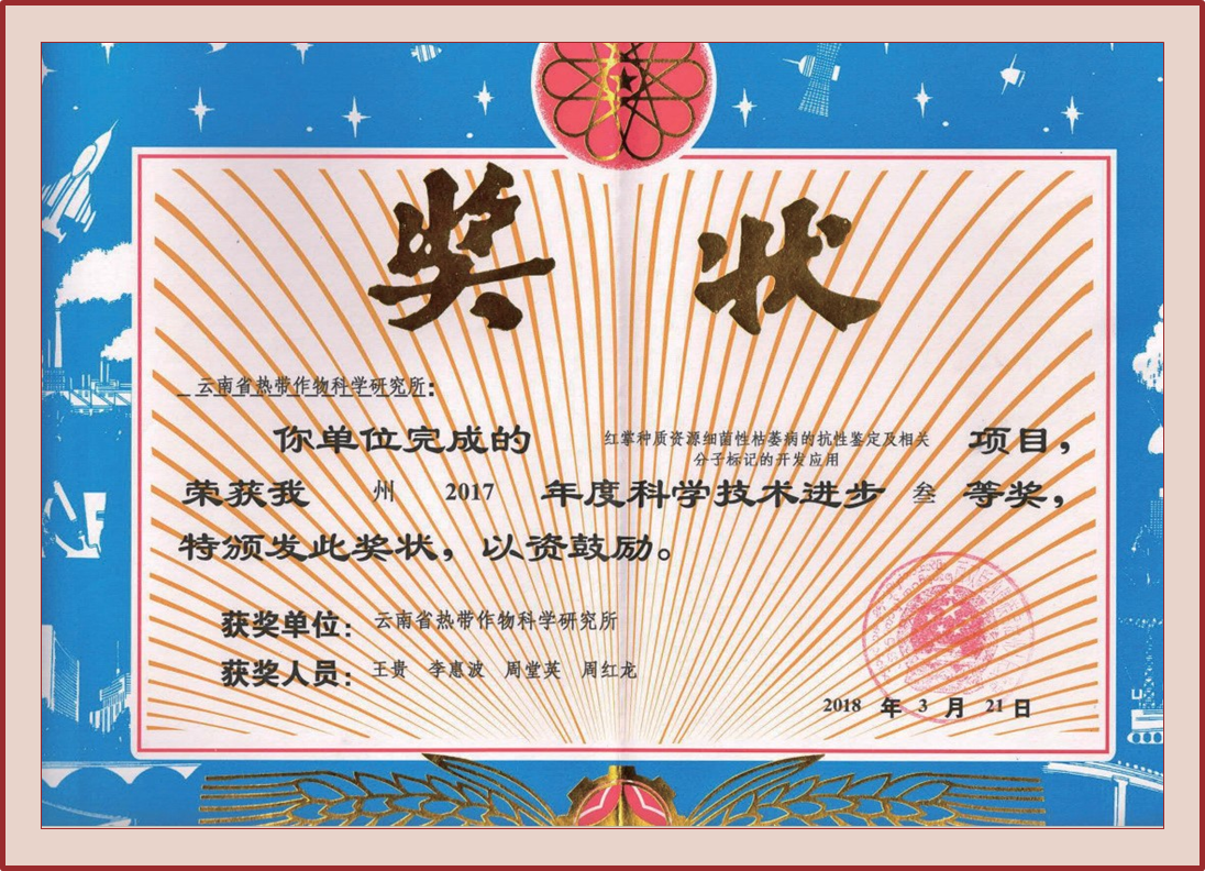 授奖级别 西双版纳州科学技术进步奖三等奖