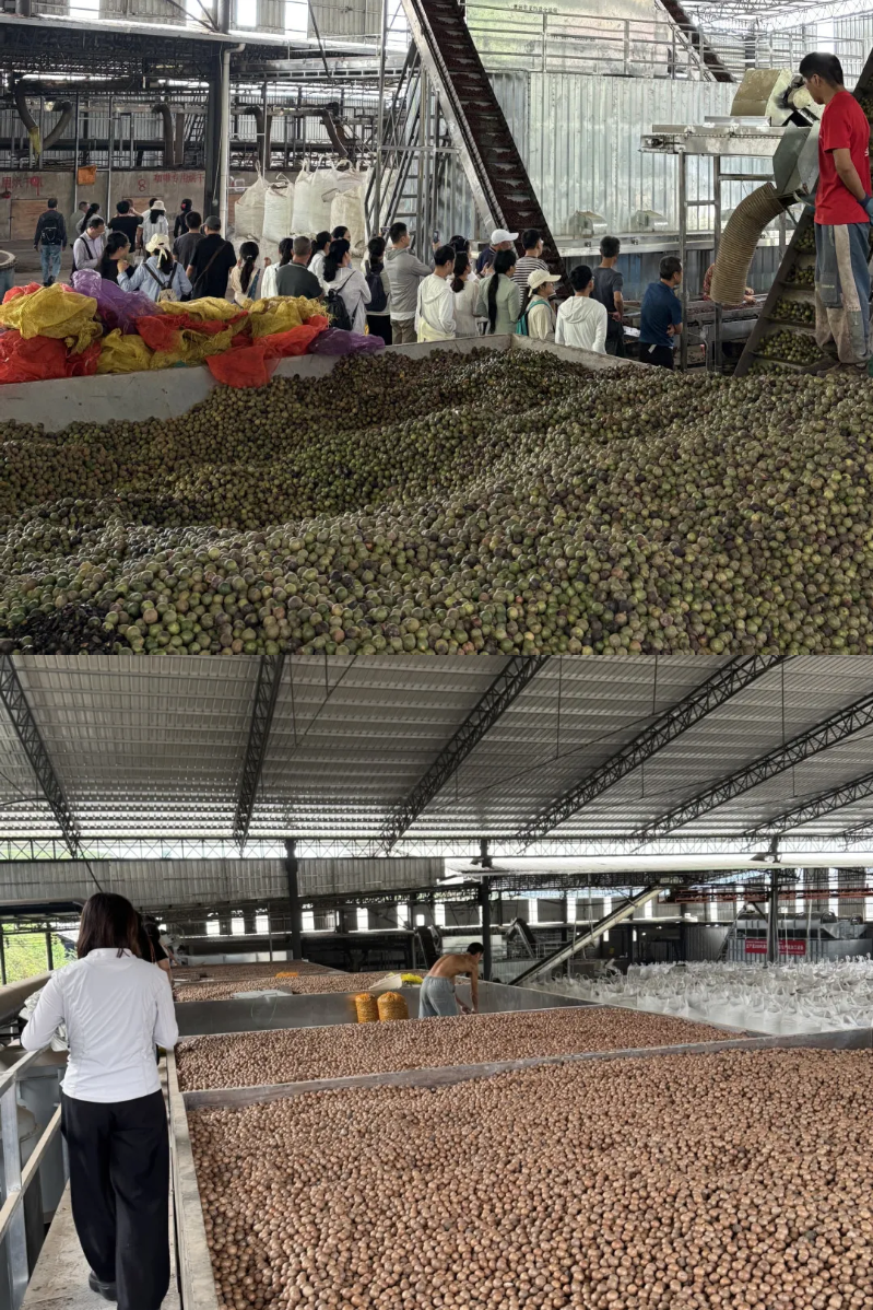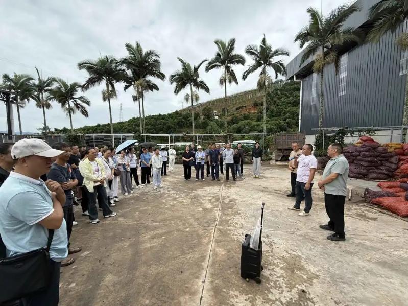 活动当天上午到西双版纳云霖咖啡有限公司坚果加工厂了解澳洲坚果初加工全流程;到云南省林业和草原科学院热带林业研究所种质资源圃,姜老师介绍了沙巴嘉宝果、巴西樱桃、黄晶果、耀堂仙桃蛋黄果等特色水果和其他科研成果。