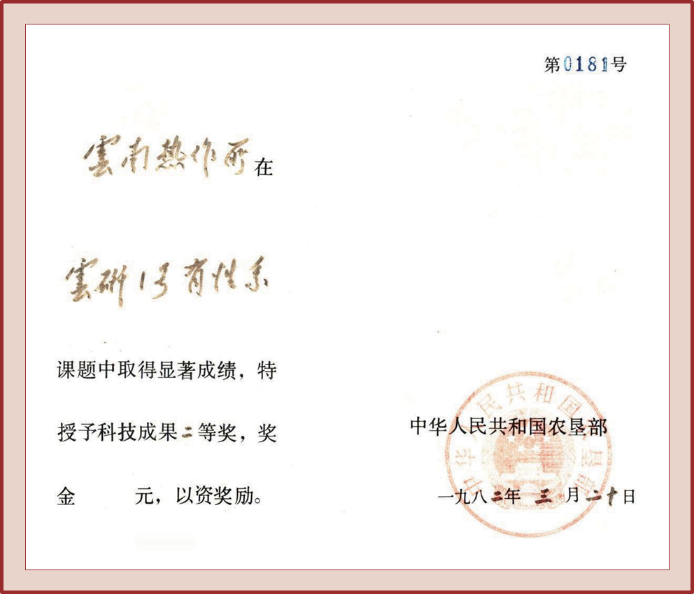 成果简介 ‘云研1 号’有性系是1966年以无性系‘ GT1’和 ‘PR107’杂交的有性后代。在1973/1974、1975/1976年冬两次特大低温中,因抗寒表现突出而被选出。现生产上已种植2万余亩。