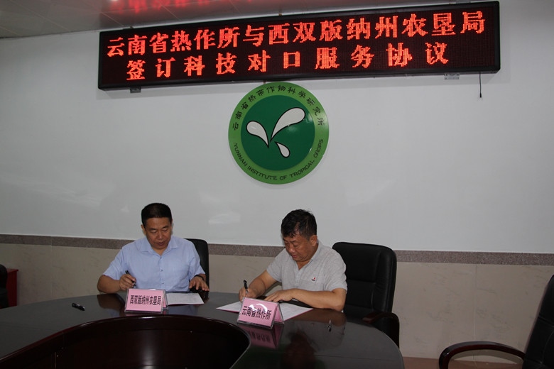 根据云南省农垦局统一部署要求,2020年4月24日,云南省热作所与西双版纳州农垦局在二会议室签订2020年科技对口服务协议,参加会议的有西双版纳州农垦局局长白云波、副局长杜宣华,云南省热作所所长李国华、副所长倪书邦、科办主任黎小清、副主任殷振华及相关人员。