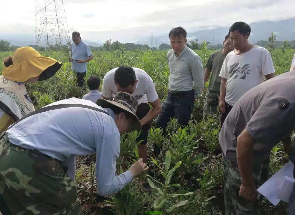 2021年6月18日,云南省盈江县澳洲坚果产业科技特派团成员蒋桂芝高级农艺师、王进强研究员在云南迪思企业集团坚果有限公司盈江芒胆基地,对来自芒胆中心苗圃、新城、芒环、壮町、莲花山、太平、俄琼基地的7个基地长及相关技术人员共22人进行澳洲坚果病虫害监测现场培训。