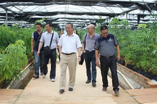 425 ,调研组一行实地调研了省热作所的农业部橡胶树优良品种籽苗繁殖基地、农业部景洪澳洲坚果种质资源圃、中古辣木科技合作中心试验示范基地、1000亩生态胶园试验示范基地、农业部景洪橡胶种质资源圃、红掌大棚、牛肝菌实验厂、澳洲坚果加工厂等科研基地。