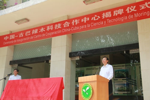 云南省委副书记仇和主持揭牌仪式,国家农业部部长韩长赋、古巴驻华使馆大使白诗德、云南省政府资政刘平分别致词,并共同为“中国—古巴辣木科技合作中心”揭牌。州委书记陈玉侯,州委副书记、州长罗红江,云南农垦总局局长白建坤,副局长汪铭,州委常委、常务副州长陈启忠出席揭牌仪式。
