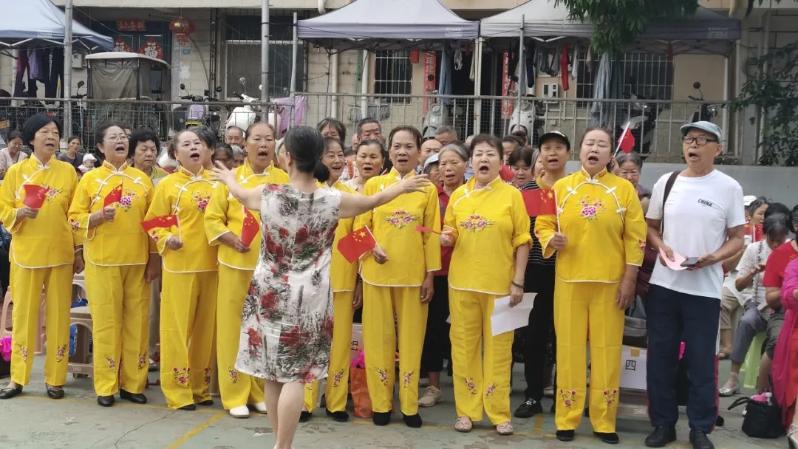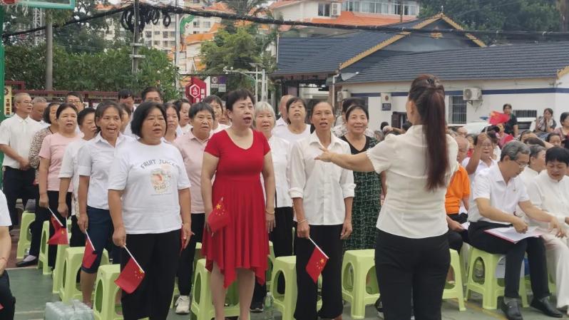 压轴登场的是退休三组,他们以一曲《歌唱祖国》点燃全场热情。“五星红旗迎风飘扬,胜利歌声多么响亮”,熟悉的旋律让许多人情不自禁跟着轻声哼唱,眼中泛起泪光。