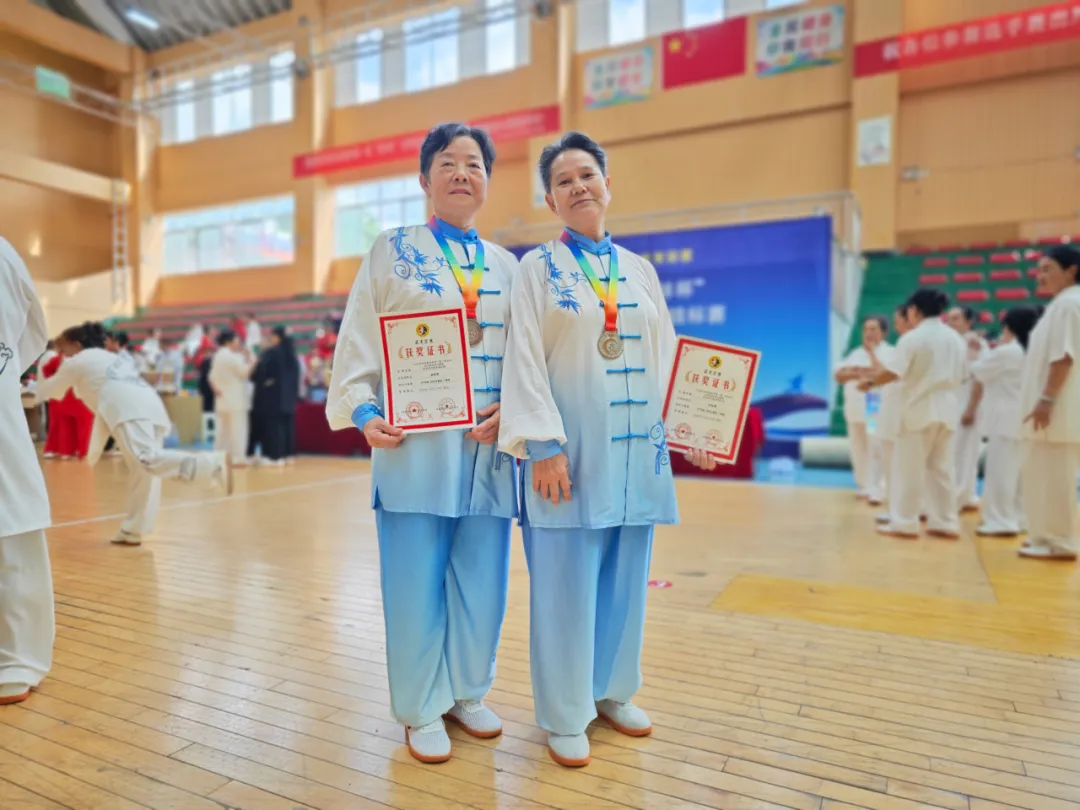 个人赛勇夺佳绩,银发健儿绽放光彩。在个人项目激烈角逐中,我单位选手同样表现亮眼:肖金莲老师凭借多年习练太极的深厚功底,在个人拳术与个人器械两个单项中均展现出高超技艺,动作舒展优美、劲力协调,最终荣获个人拳术二等奖和个人器械二等奖,彰显了退休人员卓越的艺术修养与身体素质。逯跃辉老师在专业武术赛场上,临场发挥稳定,动作干净利落,富有韵味,荣获个人拳术三等奖和个人器械三等奖,为新晋参赛者树立了榜样。她们用实际行动诠释了“退休不褪色、离岗不离志”的积极生活态度,也为广大中老年群体参与全民健身树立了典范。
