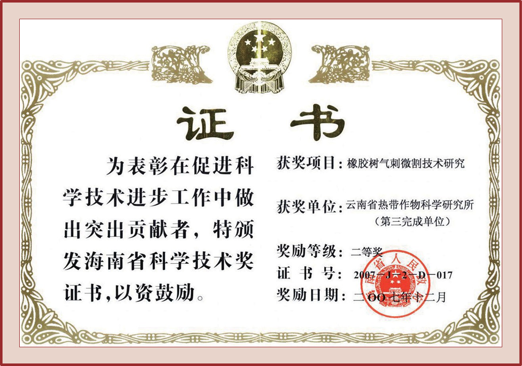 主要完成单位 中国热带农业科学院橡胶研究所、海南省农垦总局农林处、云南省热带作物科学研究所、广东省农垦总局生产处