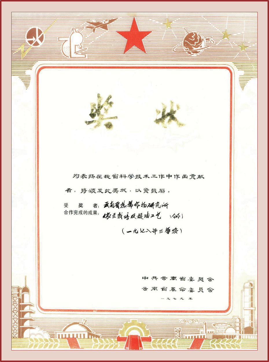 授奖级别 云南省科学技术成果奖三等奖
