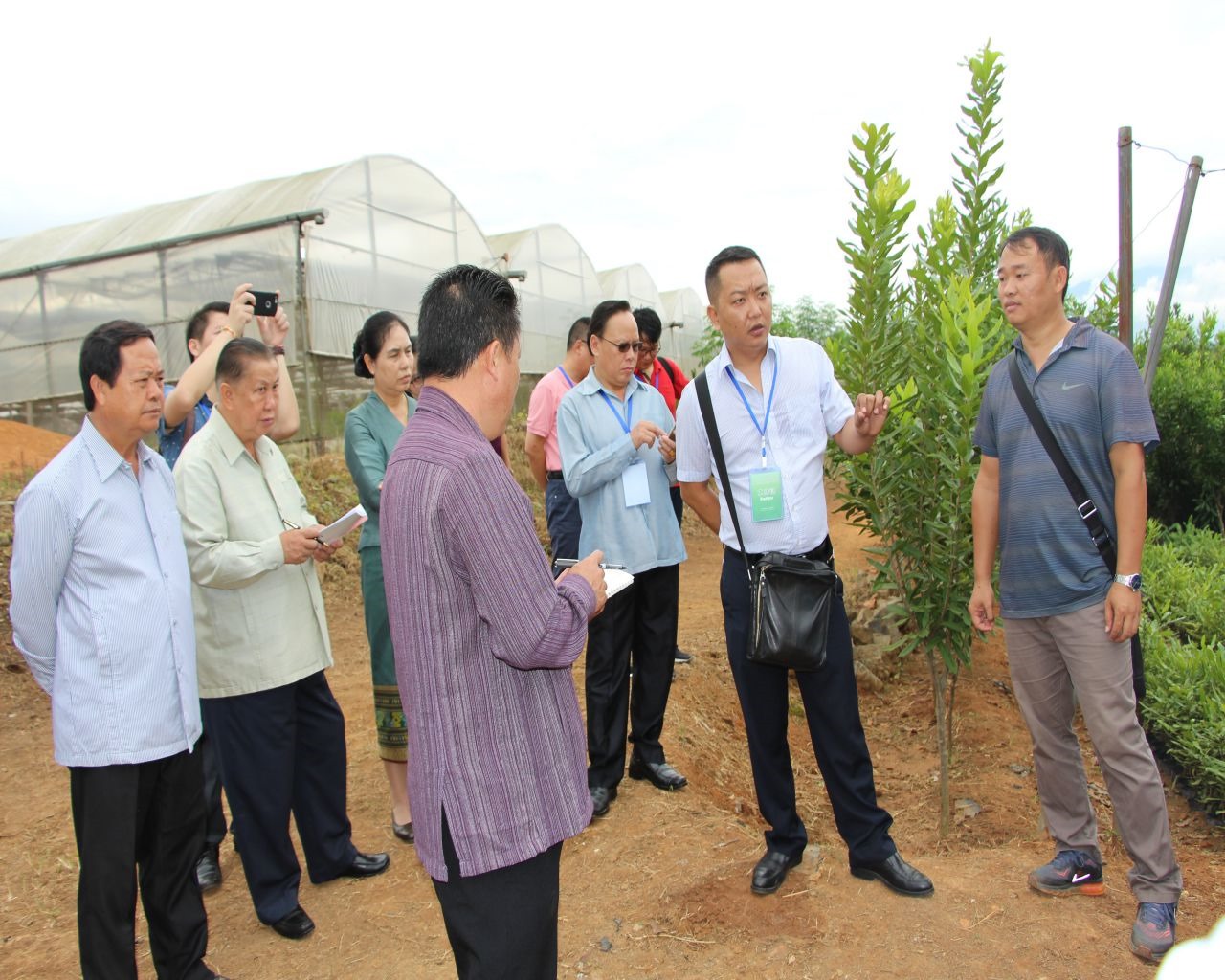 在澳洲坚果种苗繁殖基地,农艺师钟涛从以下几方面向老挝代表团一行介绍了澳洲坚果的情况,一是澳洲坚果种苗的出圃周期长,嫁接后需2至3年才能出圃移栽,定植过程中需要根据土地面积、地形、海拔等情况进行品种搭配,通过品种搭配实现优势互补,从而达到高产稳产的目的;二是目前澳洲坚果市场需求量大,亩产值高,经济效益好。