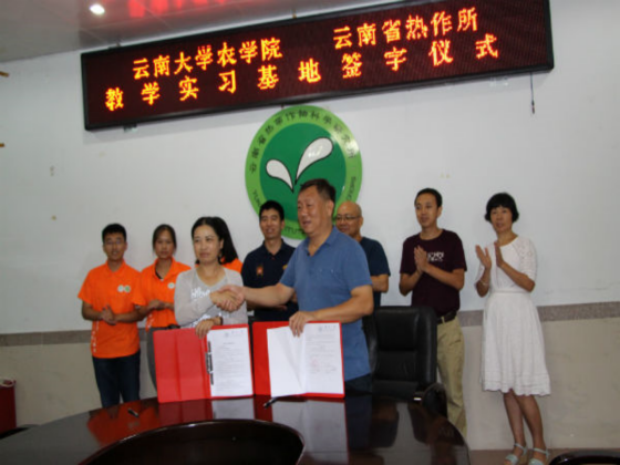 座谈结束后,双方在会上签订了“校外实习基地协议书”,并在云南省热作所挂牌建立云南大学农学院教学实践基地。