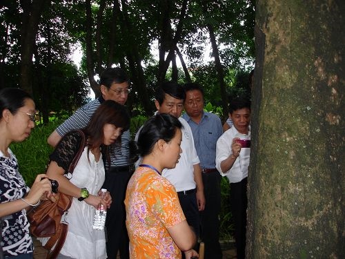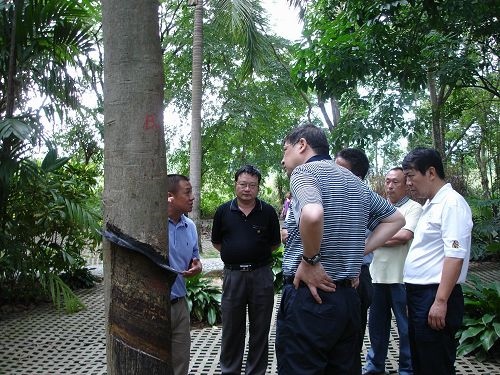 重点参观了百果园、科技陈列馆、热作所最早种植的橡胶芽接树,以及割胶表演。针对橡胶、澳洲坚果种植情况进行较详细的了解。