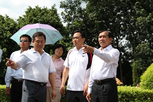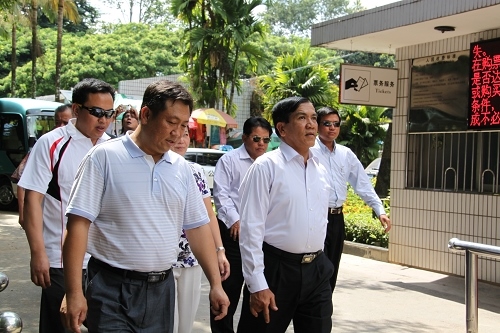 所长李国华迎接吴年温(右一)一行进园参观