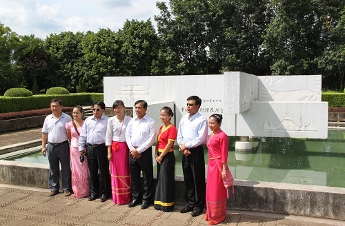 吴年温一行重点参观了中缅总理会晤纪念碑,在纪念碑前听取了所长对碑身造型及浮雕图案和文字含意的介绍,并邀请大家合影留念。中缅总理会晤纪念碑是中缅两国友好往来、胞波情谊源远流长的见证碑,在中缅建交60周年之际,吴年温此行具有重要意义。