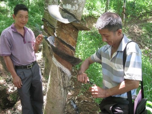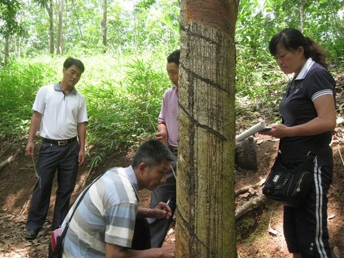 5月18-23日热作所试推办和科办有关人员到景哈乡和基诺乡试验基地进行民营橡胶产业提升关键技术集成应用示范点检查。在检查过程中种植户对相关人员说:“仅施肥这技术推广应用就让我们增产了10%,原来只有几户人家挖肥坑施肥,现在有30多户都采用这技术,你们真是为我们当地种植户办了一件好事。我们非常感谢你们热作所科技人员,感谢你们为我们送来这些先进的技术。”