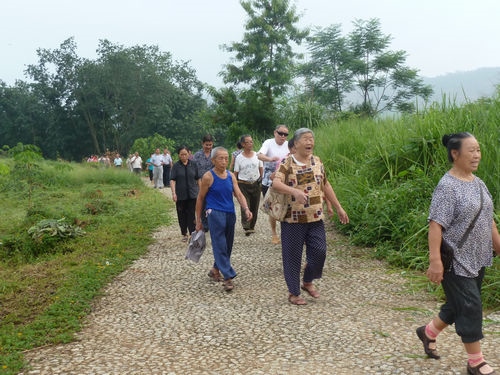 二、组织退休人员健步走。 8月9日 ,江南、江北两个片区共535名离退休人员分别在芒果山、老七队山开展健步走活动,行程均在 5公里 以上。由于这两地都是山丘,坡缓、无车,安全,老年人已经连续三年在此开展全民健身日的健步走活动。