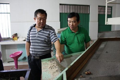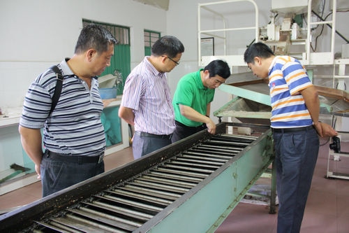 孔部长一行首先来到云垦澳洲坚果科技开发有限公司向相关负责人了解澳洲坚果的相关知识,咨询了澳洲坚果公司每年的产量及产值,还参观了公司里的澳洲坚果加工设备、鲜果储藏室、成品储藏室和现在在建的厂房。参观结束后,孔部长对澳洲坚果项目的发展给予充分肯定,并建议云垦澳洲坚果科技开发有限公司今后要加大对澳洲坚果的宣传,让更多的人了解、认识澳洲坚果,扩大销售市场,让澳洲坚果的各种好处得到充分发挥和利用。