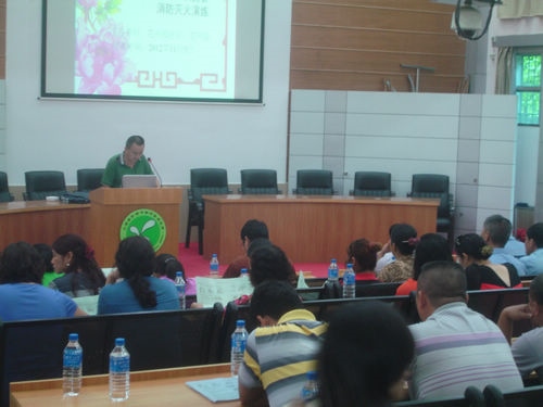 花卉园周建军书记主持活动。首先在热作所学术报告厅,花卉园办公室肖文莲主任和保安部杨成师经理组织消防安全知识竞赛。花卉园社区向大家发放《消防小常识》宣传资料。竞赛结束后,花卉园社区书记(居委会主任)者艳就花卉园社区辖区内的消防工作做总结汇报。花卉园辜志平总经理、允景洪街道工委段勇副书记、花卉园社区张洪副书记、花卉园社区居委会玉金副主任参加本次活动。