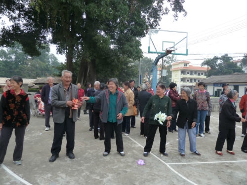 1月15日上午,机关篮球场、清真寺二队文化室、江北文化室前场地笑声不断,由所退管办、老体协组织的老年迎春趣味活动,分三个场地正同时火热进行。全所退休人员在小组成员的带领下,玩起了击鼓传花的游戏。此次的游戏规则是:以组为单位,围成大圈,其中6至8人手持花束,鼓响花传,鼓止花停,花落谁手,谁就表演节目。