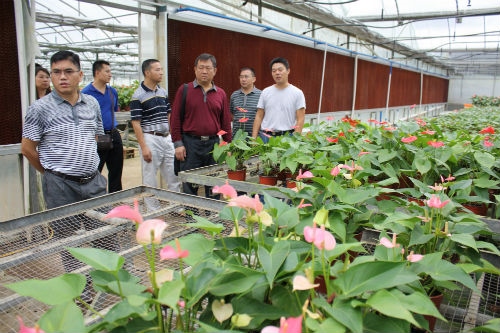 在结束了辣木、诺丽的考察后,考察组一行又来到热带花卉红掌基地考察,与课题负责人探讨红掌的经济前景。技术人员李惠波向考察组介绍了红掌的研发、市场销售前景等情况。截至目前,省热作所已经申报了共计23个红掌新品种的专利保护权,这将是一笔很宝贵的品种资源财富,让红掌在未来的市场发展上赢得了先机。