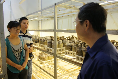 参观考察完红掌基地考察组又来到暗褐网柄牛肝菌菇房考察,牛肝菌的技术人员张春霞向考察组介绍了牛肝菌的培育技术、生长周期、适宜温度等内容。暗褐网柄牛肝菌是在野生牛肝菌的基础上发展起来的,经过近10年的研发,省热作所在牛肝菌领域已经实现了自主种植牛肝菌的可喜成就,下一步研究的主要方向将是牛肝菌的户外仿野生栽培技术,此项技术一旦取得突破,那么将为牛肝菌的产业化、市场化生产提供强有力的技术支撑。