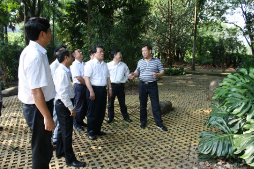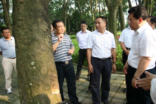 副省长刘慧晏(中)参观第一代芽接橡胶树