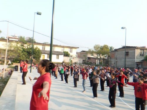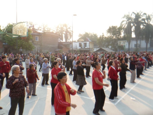 随后,江南片区近400名退休女工,在科苑艺术团8名健身爱好者的带领下,大家连续跳起了“五行健康操”、“十全甩手操”和“佳木斯快乐健康操”,用时55分钟。无论六、七十岁的老人,还是新近退休的女工,学的十分认真,跳的非常开心。整个活动,队列整齐,场面浩大。此前一天,江北片区的退休女工,也开展了集体健身运动。退休女工们用快乐健身,庆祝妇女自己的节日!