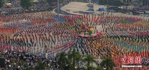 4月14日 参加景洪市政府组织的庆祝傣历1376年民族文化大游演及在泼水广场举行的万人傣族伞舞表演并创世界吉尼斯纪录。
