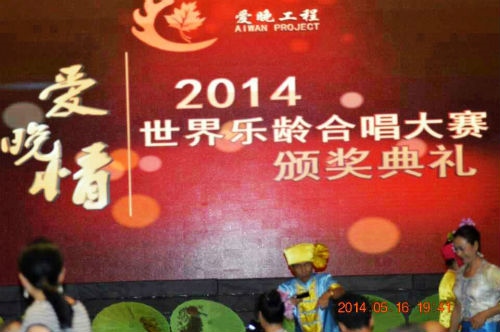5月14至16日,参加了由民政部、全国老龄委、人民日报社指导,爱晚集团承办、省民政厅、州政府协办的《爱晚晴 2014世界乐龄合唱大赛》,大赛在曼弄枫“皇冠假日大酒店”举行。有来自云、贵两省的9支老年合唱团参加,我州有科苑艺术团、孔雀湖老年合唱团、州老年大学艺术团、州老年艺术团、勐腊南腊之声艺术团等5个团队参赛。在大赛上,我队演唱的《让我听懂你的语言》、《嘎汤帕的篝火》,在金泽老师的钢琴伴奏和肖霞老师的高超指挥下,以29名参赛队员的优美、灵动的表演方式,得到大赛评委的高度好评。16日晚上,参加中国社会化养老“爱晚工程2014版纳论坛”的国家民政部领导和爱晚工程领导小组组长亲自为荣获“最美声音奖”的贵州六盘水合唱团、荣获大赛“最具活力奖”的科苑艺术团和公益贡献奖的昆明知青合唱团颁发奖杯和奖状。