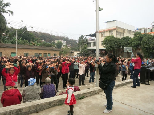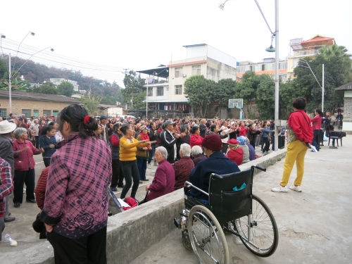 上午8点,江南片区近500余名退休人员纷纷聚集到球场,在教练人员的带领下,手拿歌词,在电子钢琴和萨克斯等乐器的伴奏下学唱《长寿歌》。8点20分,活动正式开始,退管办主任作了简短的宣传动员,希望全体退休人员要象长寿歌中所唱的那样,要活九十九,常用脑和手,经常拍拍手,饭后百步走,饮食莫贪口,荤素都要有,奉劝老年朋友,有病看医生,听课莫洗脑,购物需谨慎,长寿靠健身,当日的老年迎春活动围绕“科学健身、健康长寿”的主题,开展了三个活动项目,一是齐唱长寿歌,二是同跳《五行健康操》和《十全甩手操》,三是分组传彩球。整个活动安全、健康、热闹。部分80岁以上行动不便或瘫痪的老人,在家人的陪同下,也来到活动现场,感受热闹的气氛,600多名退休人员,在这次庆新春迎春节活动中,唱歌、跳操、玩球,既锻炼了身体,又寓教于乐。
