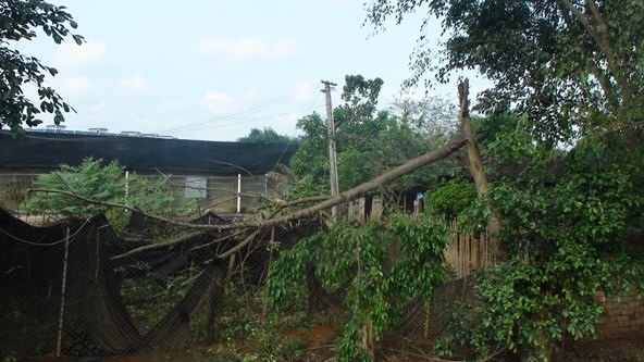4月21日 下午3点24分,我市遭特大风暴袭击,导致云南省热作所各居民住房、经济作物、实验大棚、电力设施等遭受了不同程度的损害,经济损失严重。