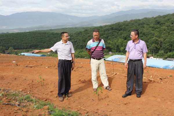 6月24日 上午,省热作所党委书记李存生、副所长陈克难到更新的100亩生态胶园察看胶园建设情况。更新的100亩生态胶园在副所长陈克难的领导下,通过试推办、江南队全体科技人员的艰辛耕耘、共同努力,于 2015年6月24日 初步完成胶园树苗的更新定植工作。据副所长陈克难介绍,按照预先规划设计的方案,后期将进一步完善生态胶园的整体模式,在胶园内套种辣木、诺丽等作物,围绕胶园周边道路种植珍贵经济林木,同时,为切实做好生态胶园模式的推广宣传工作,将在胶园旁边建设宣传展板,更加直观、形象的展示生态胶园模式,为学习参观提供便利。党委书记李存生在察看生态胶园建设情况的过程中,充分肯定了更新的100亩生态胶园的工作成效,他强调:作为单位重点建设的精品生态胶园示范点,要加强胶园的日常管理维护工作,确保建设生态胶园的各项工作良好有序的开展,最终把生态胶园种植模式建设成良好的试验示范基地。